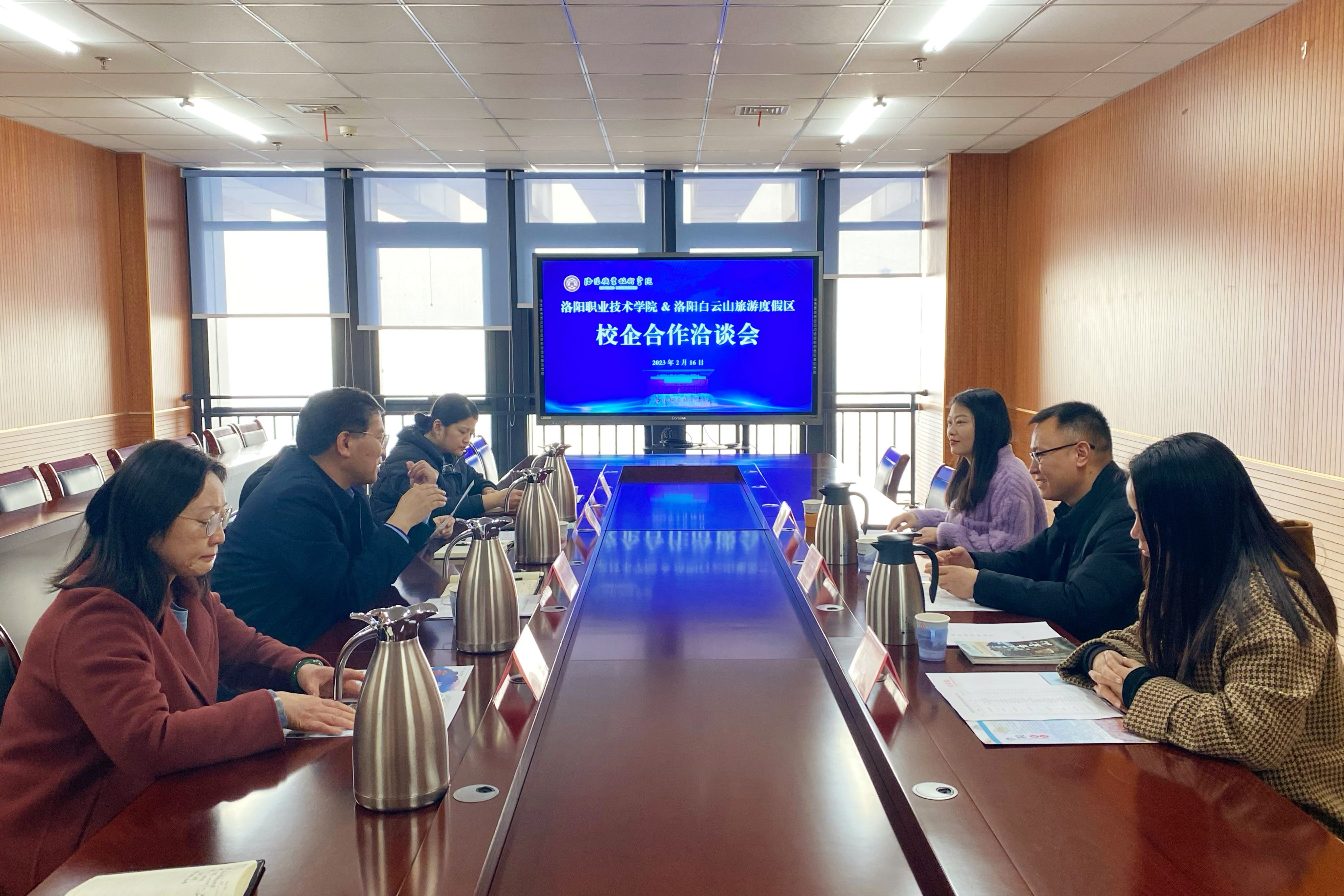 2月16日下午,我校与洛阳白云山旅游度假区校企合作洽谈会在图文信息中心958会议室召开。洛阳白云山旅游度假区人力资源部总监李凯、我校副校长张志友出席会议。