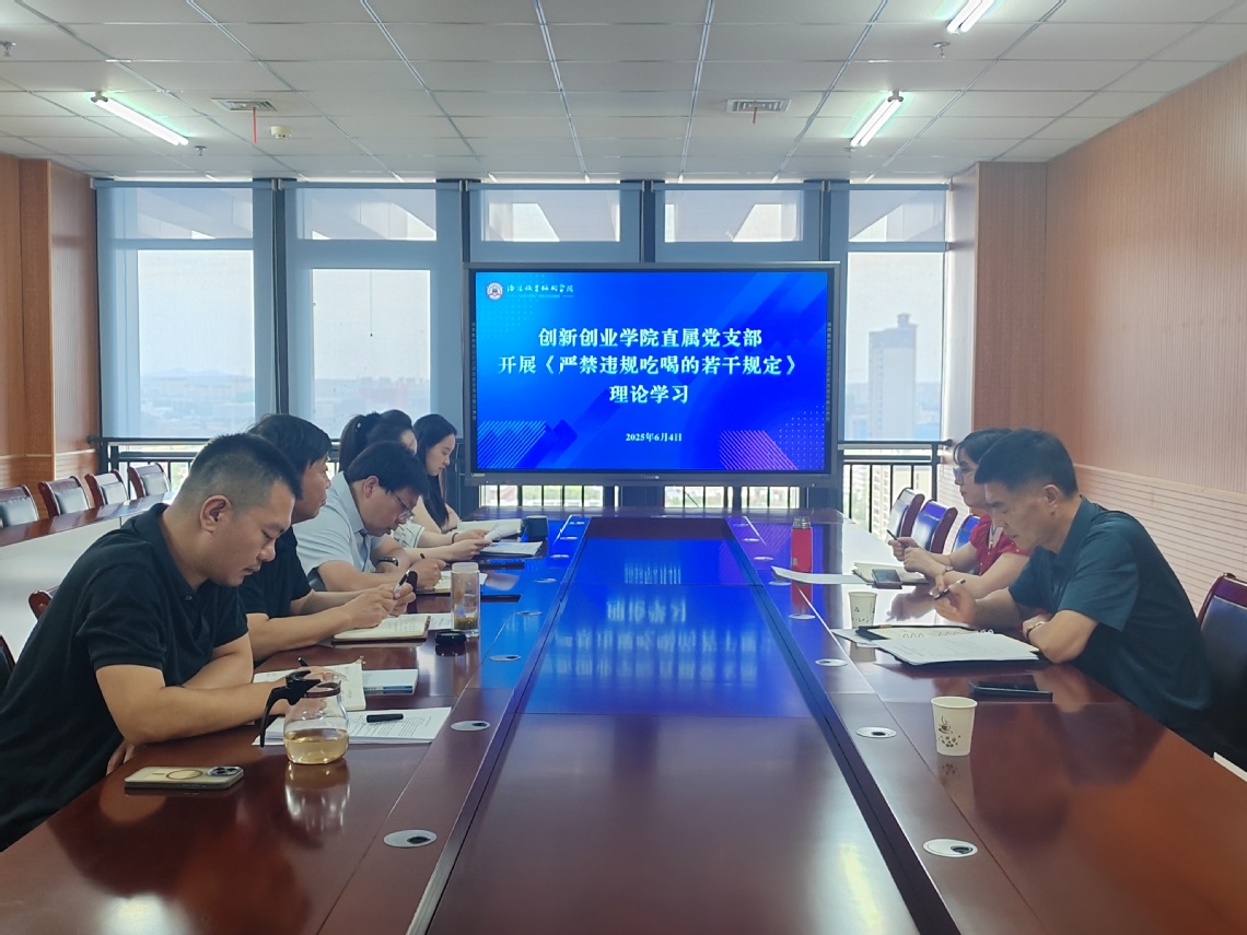 6月4日,创新创业学院直属党支部组织专题学习会,深入研读《严禁违规吃喝的若干规定》,以强化纪律意识,筑牢廉洁防线。