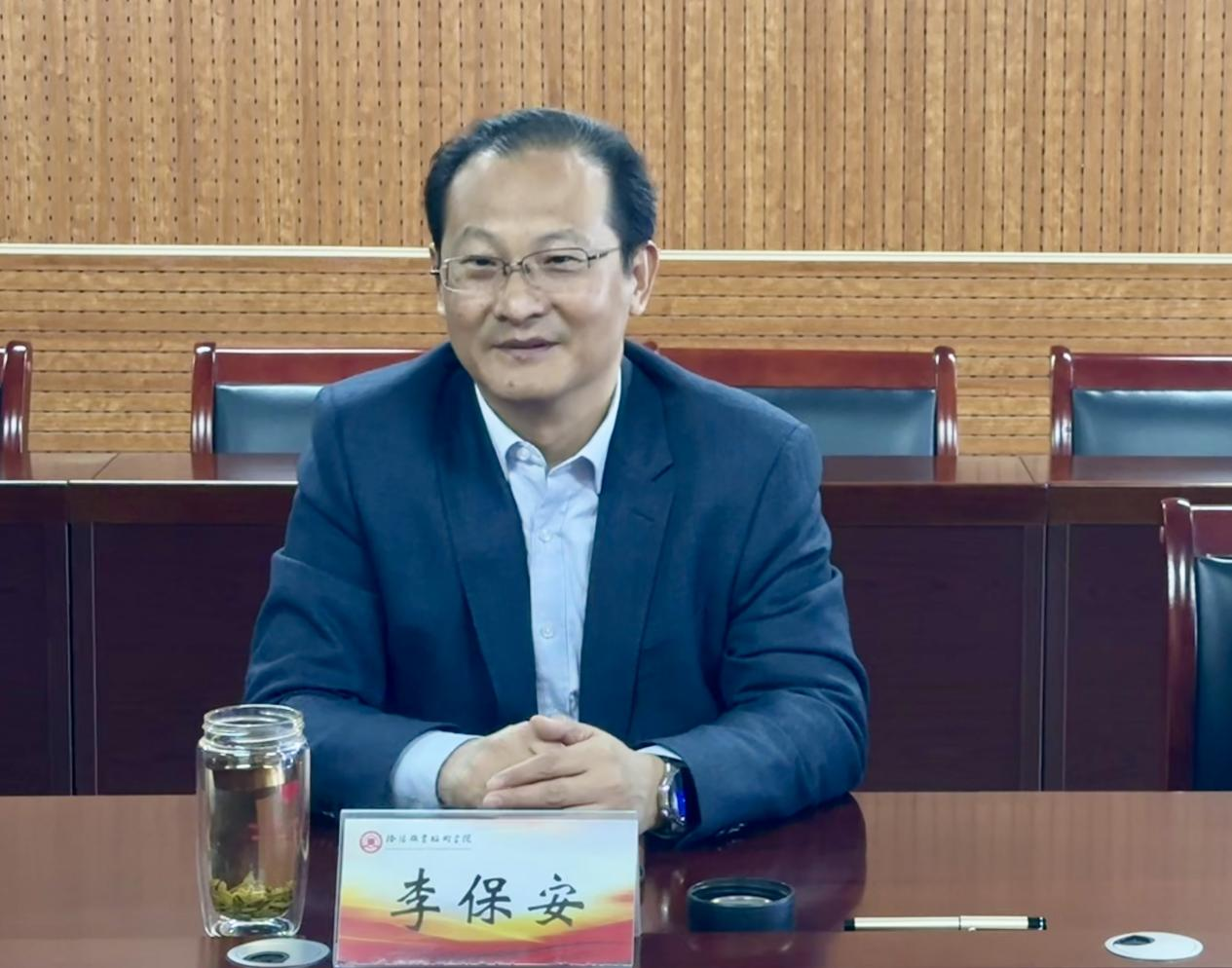 李保安详细介绍了我校的办学历史、专业建设成果和招生就业情况。他强调,学校近年来以“双高建设”为引领,持续深化教育教学改革,优化专业结构布局,希望双方以此次交流为契机,加强沟通交流,不断拓展人才培养、课程共建等方面的合作维度。